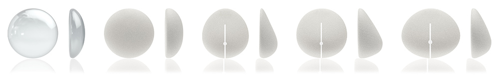 The new breast implants do come in different shapes and sizes. The classic gummy bear implant is a textured and anatomic or tear drop shaped implant. The texturing is necessary to hold the implant in its anatomic position and prevent rotation. Smooth or textured round implants are available.